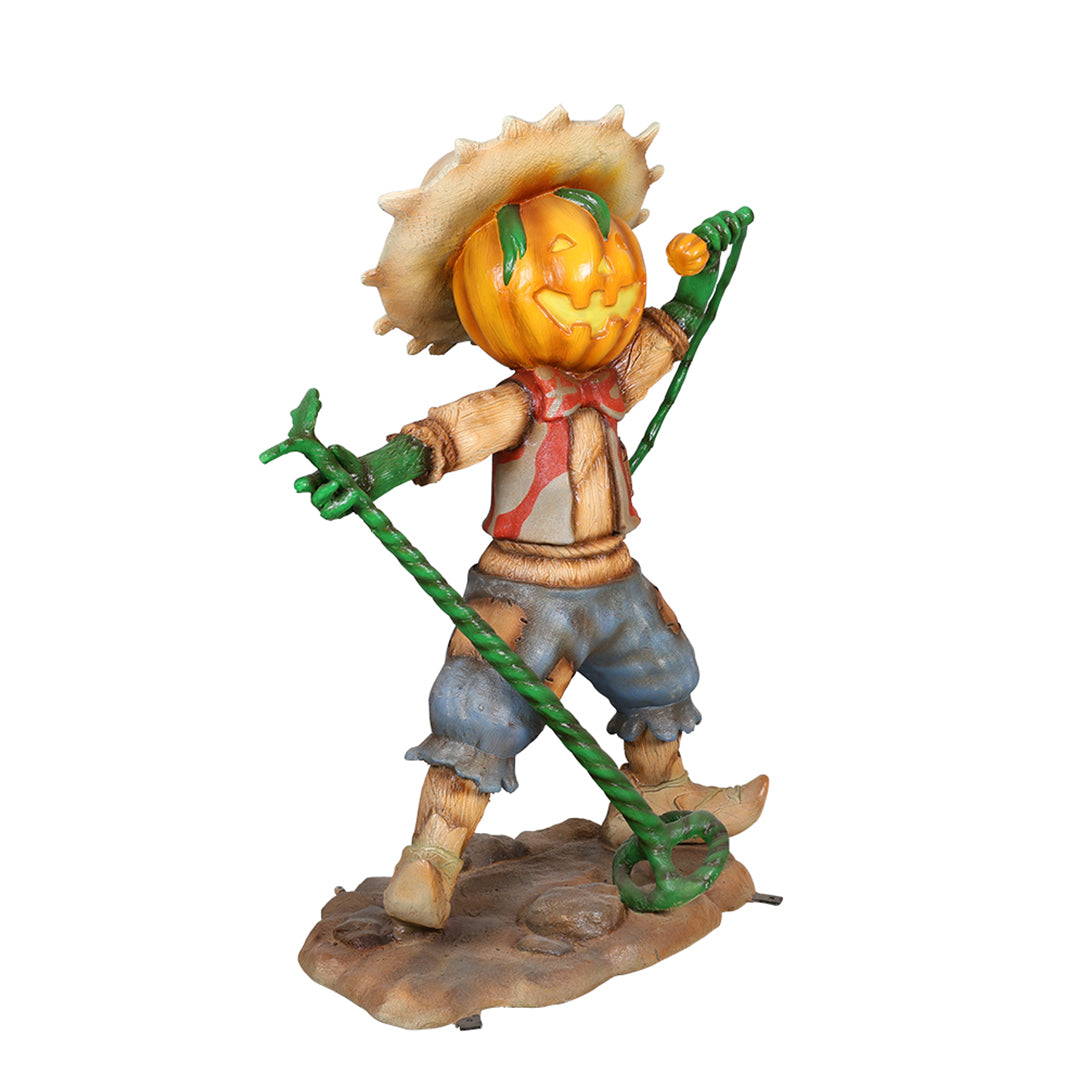You can almost hear the beautiful voice of this singing Pumpkinhead statue with light and microphone just by looking at it. He is the lead singer in our very popular Halloween Pumpkinhead Scarecrow Band consisting of 4 members. The complete band will create a swinging and musical Halloween display for your visitors, guests, and customers.