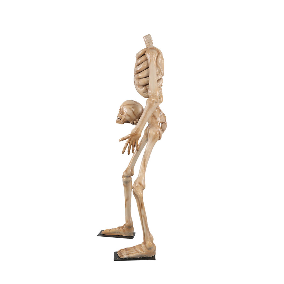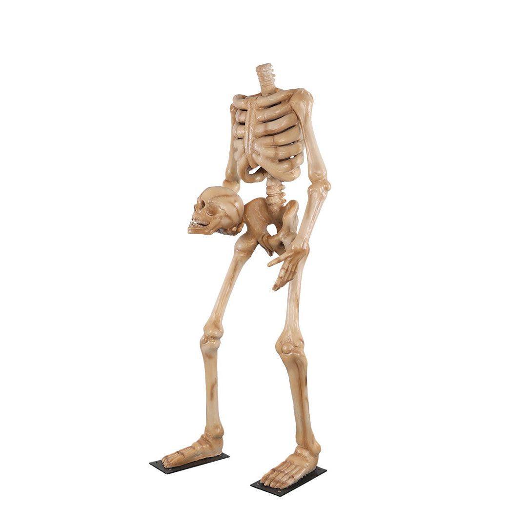 Create a spectacular Halloween display for your visitors with this headless skeleton statue. This spooky decor is sculpted and painted in the finest detail for a realistic look. It is made of durable fiberglass resin that can withstand any weather, making it an ideal display for any indoor and outdoor environment.